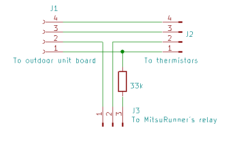 MitsuRunner-adapterila MitsuRunner LN-ilmalämpöpumpun ulkoyksikön anturiliittimen ja anturin johdon väliin kätevästi. Voit rakentaa adapterin itse, tai tilata laittamalla sähköpostia osoitteeseen puu [ät] kapsi [piste] fi. Adapterin hinta on kiinteä 30€/kpl + 5€ (pakkaus & postitus).