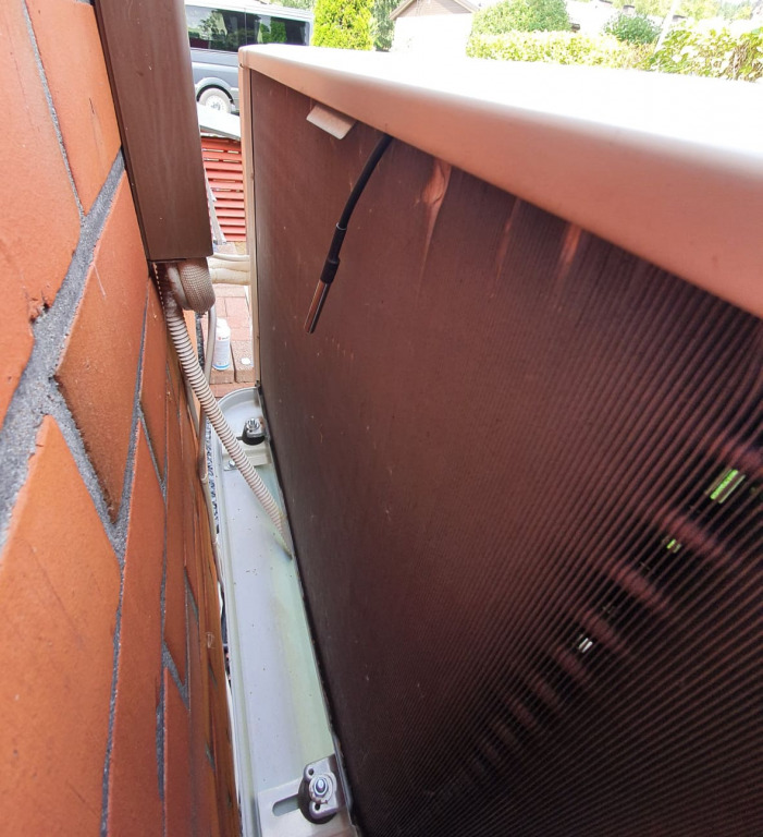 Yläputkeen pääsee käsiksi avaamalla ulkoyksikön kotelon. Putken alapuolella on hitsattu/juotettu kotelo ILP:n omaa anturia varten. Mitsurunnerin anturi kiinnitetään tämän kotelon kylkeeen vähintään kahdella nippusiteellä.