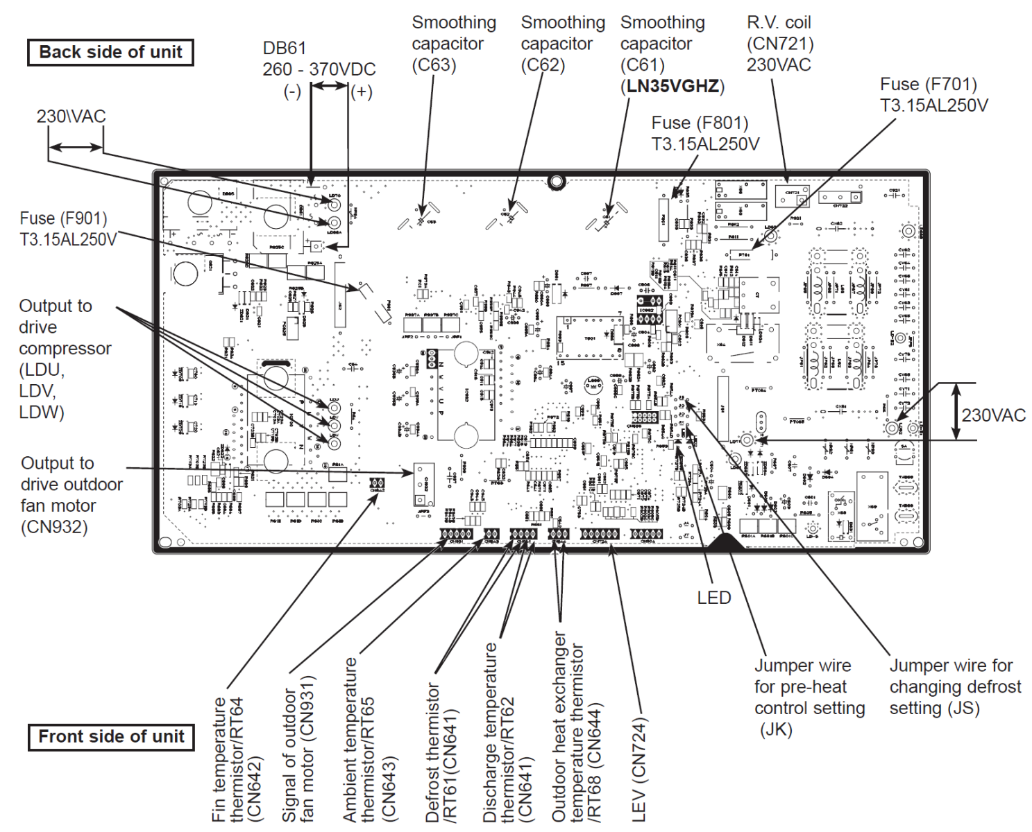 MUZ-LN25/LN35 ulkoyksikön piirikortti